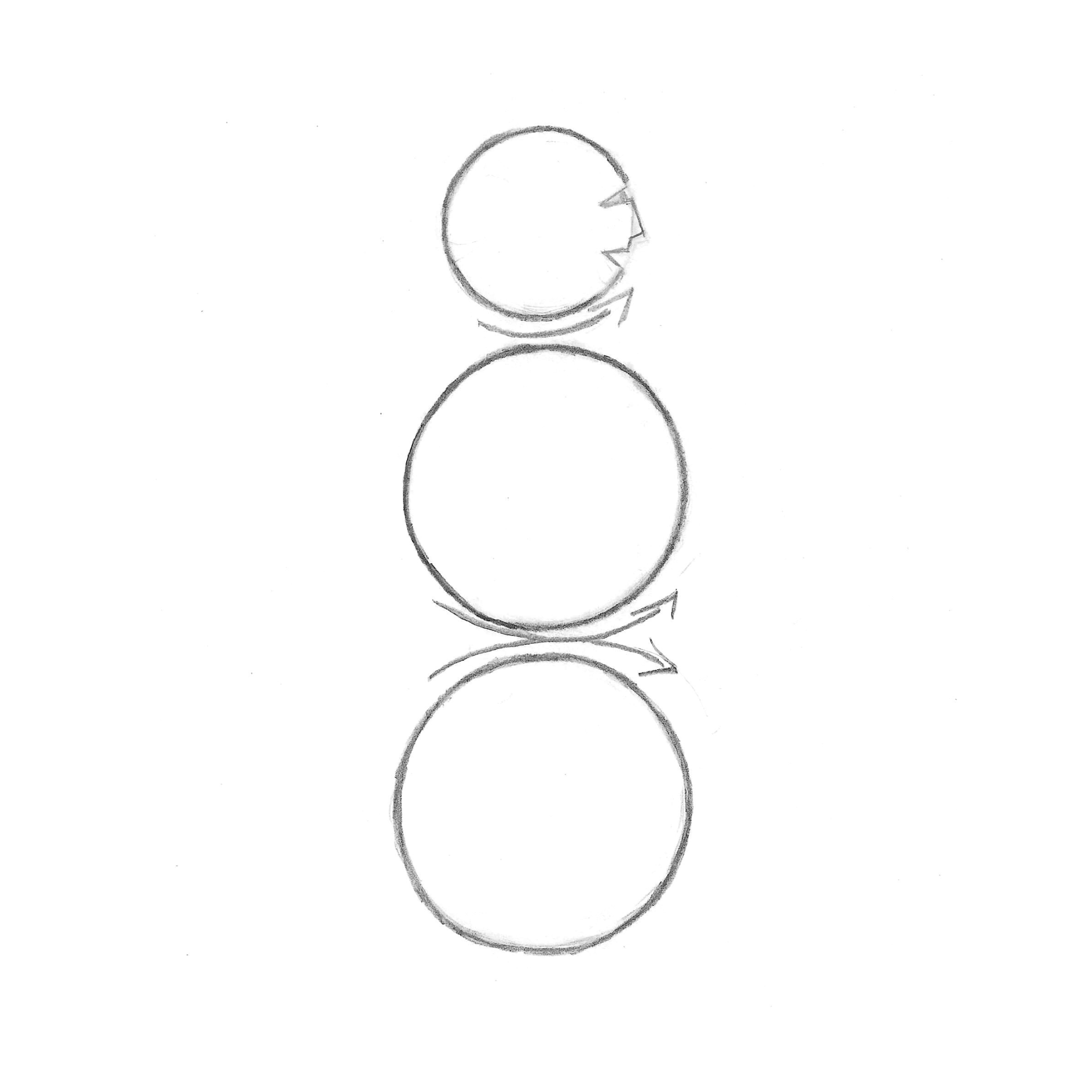 The three circles demonstrate: When the bottom circle (pelvis) tilts anteriorly, the middle circle (chest) and upper circle (head) tilt in the opposite direction. Conversely, how we position our chest influences our pelvis.