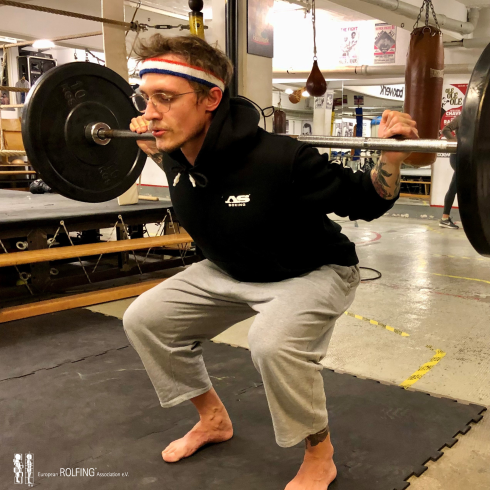 Die klassischen Ansätze des Krafttrainings mögen manch einem einseitig und überholt vorkommen, und dennoch finden sich im Trainingsplan eines jeden Leistungssportlers Übungen wie Kreuzheben, Kniebeuge, Bankdrücken und Klimmzüge. Diese vermeintlich simpel anmutenden Übungen erweisen sich noch immer als äußerst wirkungsvoll wenn es darum geht Kraft und Explosivität aufzubauen. Sie bilden den Ausgangspunkt für jede weitere Übertragung der erworbenen Kraftfähigkeiten in die spezifischen motorischen Anforderungen der jeweiligen Sportart. Als Rolfer® haben wir durch unsere integrative Arbeit nun die Möglichkeit z.B. dem Kreuzheben oder Kniebeugen eine neue sensorische Qualität zu geben. Nachdem mittels des neurofaszialen Systems die Gleitfähigkeit faszialer Strukturen verbessert wird und sich folglich eine veränderte Wahrnehmung für den Körper und seine Bewegungen einstellt, kann es uns gelingen zu einer scheinbar einfachen Übung wie der Kniebeuge eine veränderte koordinative Komponente beizusteuern. Ist sich der Athlet*In seiner Füße bewusst und im Raum orientiert, kann die ökonomische Ausrichtung der eigenen Vertikalen im Schwerefeld dazu beitragen, dass die zusätzliche Last auf seinen/ihren Schultern als leichter empfunden wird. Das motorische Nervensystem kann dann leichter und schneller angesteuert werden, eine kraftvollere und explosivere Bewegungsausführung kann die Folge sein.
